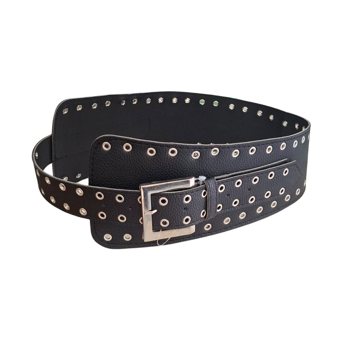 Faja de cuerina con hebilla cuadrada y ojalillos.