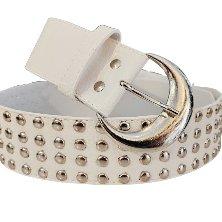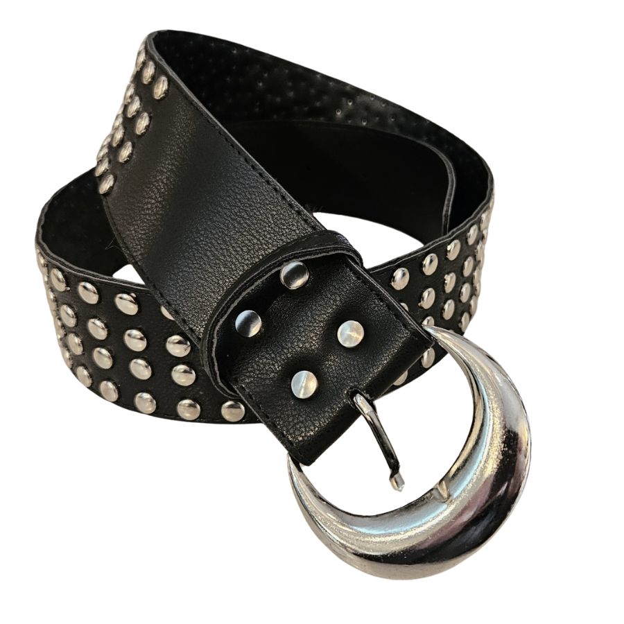 Cinto cuerina con tachas plateadas
